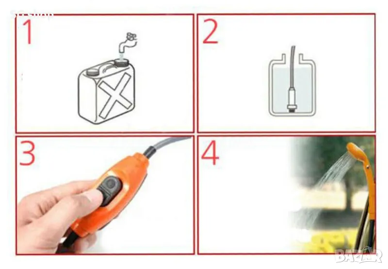 Преносим портативен къмпинг душ с помпа за автомобил 12V → Обява 50029804