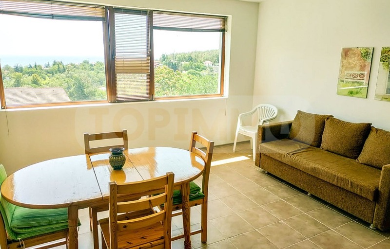 От дневната и една от спалните има излаз на голяма тераса, от която се открива невероятна гледка към зелените хълмове и Черно море. В допълнение, втората спалня също има балкон, от който има гледка към басейна.