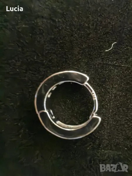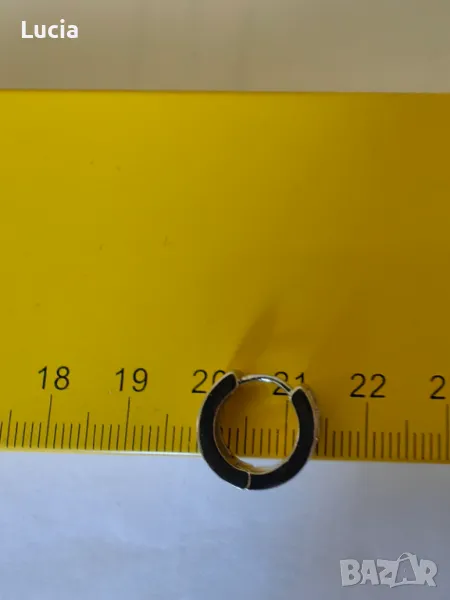 Обеците са ми подарък. Сребърни с маркировка. Диаметър 1,4 см., широчина 3 мм. С по 7 синтетични цирконийчета всяка.