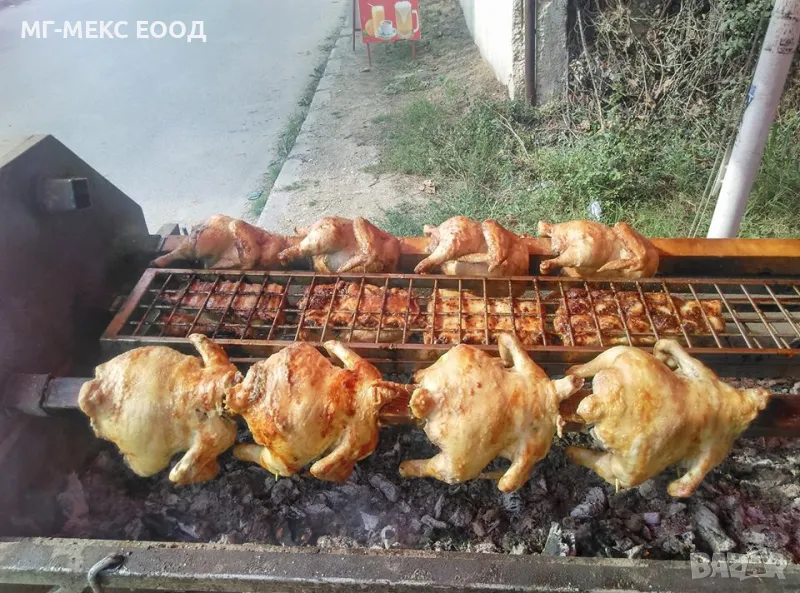 ГРИЛ-БАРБЕКЮ с мотор-редуктор на дървени въглища за приготвяне на всички видове печива и