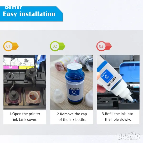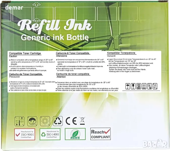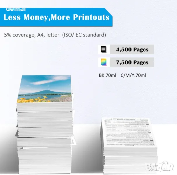 Този мултипак с 5-цветни съвместими бутилки с мастило е предназначен за широка гама принтери от серията ET, включително модели като ET-2710, ET-2720, ET-2810, ET-2820 и ET-4700. Предлагайки висок капацитет отпечатани страници до 4500 за черно-бяло и 7500 за всеки цвят (при 5% покритие), мастилото е формулирано да бъде висококачествено, без мирис и надеждно за плавен и ефикасен печат. Произведени в сертифицирани по ISO съоръжения с над 20 години технически опит, тези бутилки с мастило отговарят на строги стандарти за качество и опазване на околната среда, което ги прави надеждна алтернатива на оригиналите.