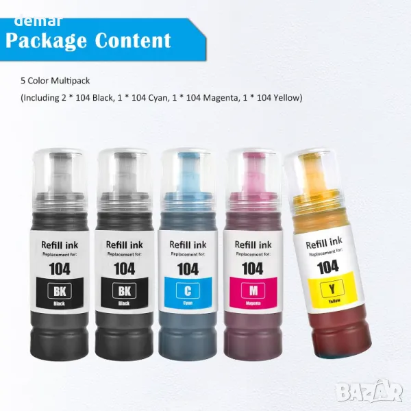 104, 5 броя бутилки с мастило за принтери Epson, серия EcoTank