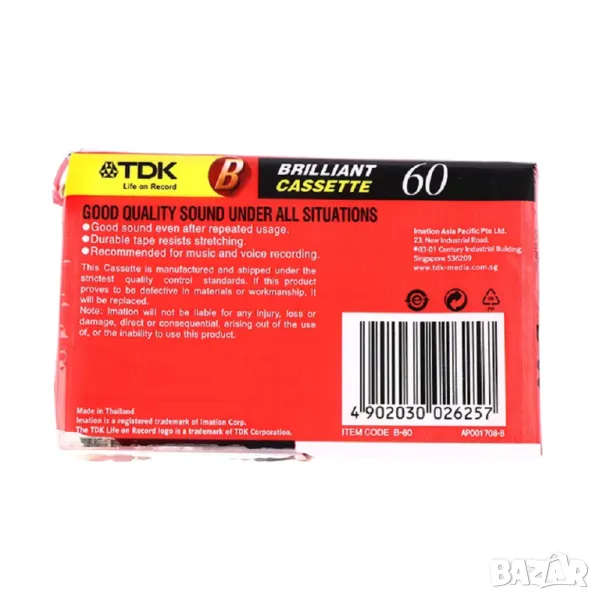 Тази стандартна празна касета е подходяща за всички аудио устройства, поддържащи формат Compact Cassette. Изработена е с внимание към качеството — магнитна лента с добър магнитен слой, устойчив корпус и надежден механизъм за навиване. Лентата осигурява равномерно движение и нисък шум на фона, което подобрява качеството на записа. Касетата предлага 60 минути запис — 30 минути на страна — и е идеална за домашно студио, запис на аудио файлове, диктовки, песни или като средство за архивиране на звукови спомени.