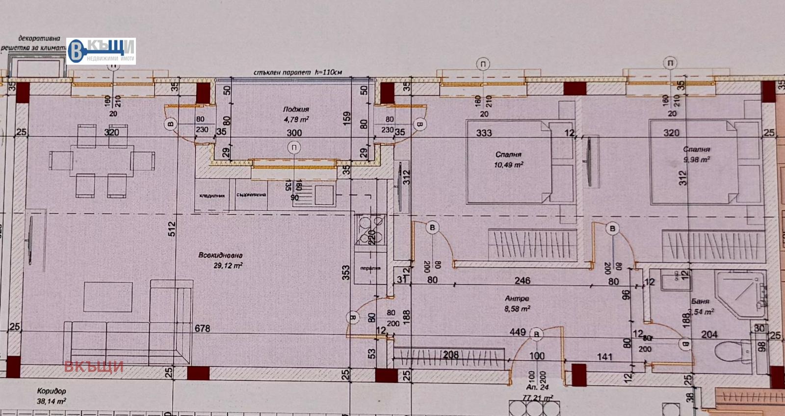 Обща площ: 91,85 кв.м