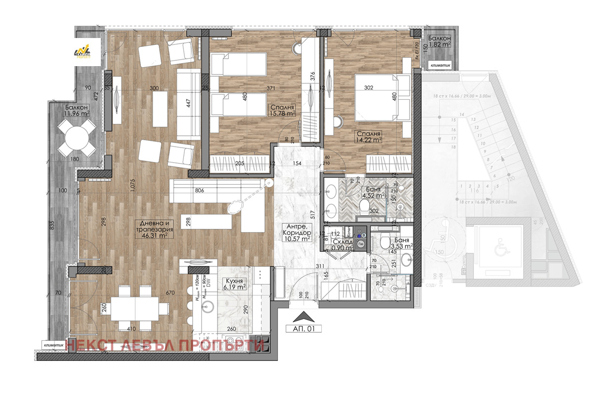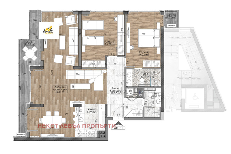 🏢 Представяме Ви тристаен апартамент с чиста площ от 128,78 кв.м. в модерен жилищен комплекс с много качествено строителство.