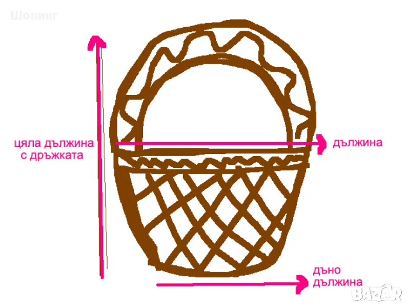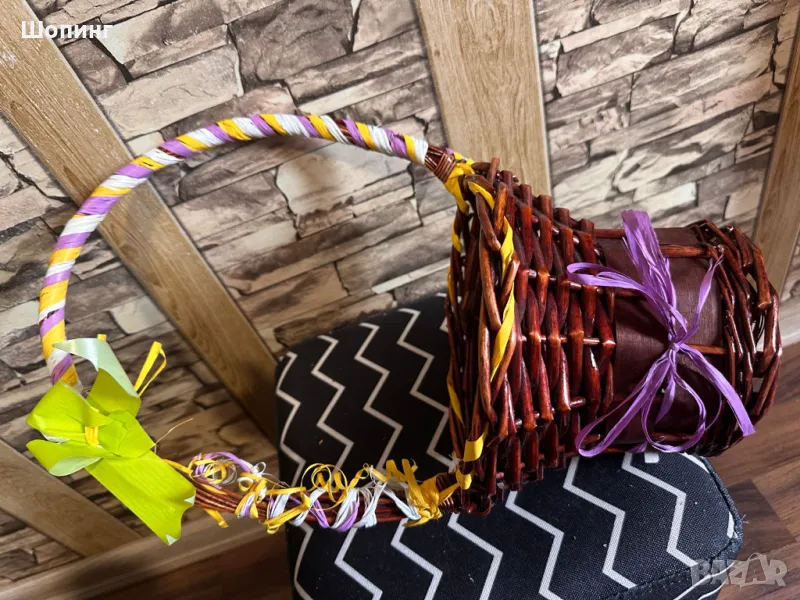 Кошница с размери: височина и цяла дължина - 33 см, дъно - 27 см. - цена 25 лв. (без продуктите)