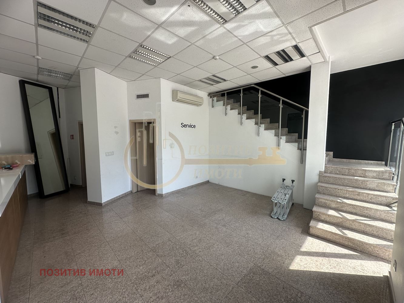 Магазинът е разположен на две нива - партер (60 кв.м.) и първи етаж (100 кв.м.), като и двете помещения са еднопространствени. На приземното ниво са разположени самостоятелен санитарен възел и складово помещение. Подходящ за търговски обект, шоурум, офис и др. Отоплението се осъществява чрез климатична система. Сградата разполага с денонощна жива охрана, видеонаблюдение, два асансьора и луксозни общи части. Такса поддръжка в размер на 800лв./месец.
