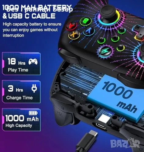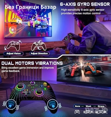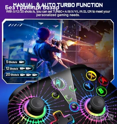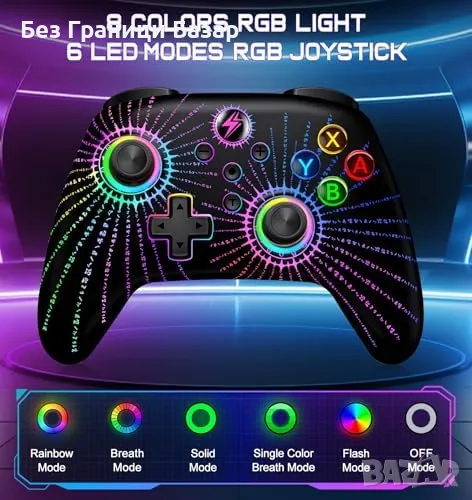 Нов Безжичен Контролер за Switch RGB Светлини Turbo и Вибрация за игри