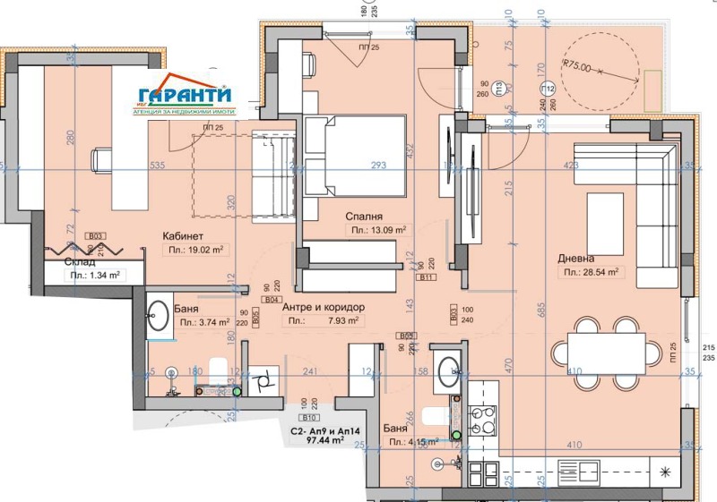 ✅ Оферта 8181. Агенция Гаранти представя на Вашето внимание тристаен апартамент в новостроящ се жилищен комплекс, намиращ се в село Марково..