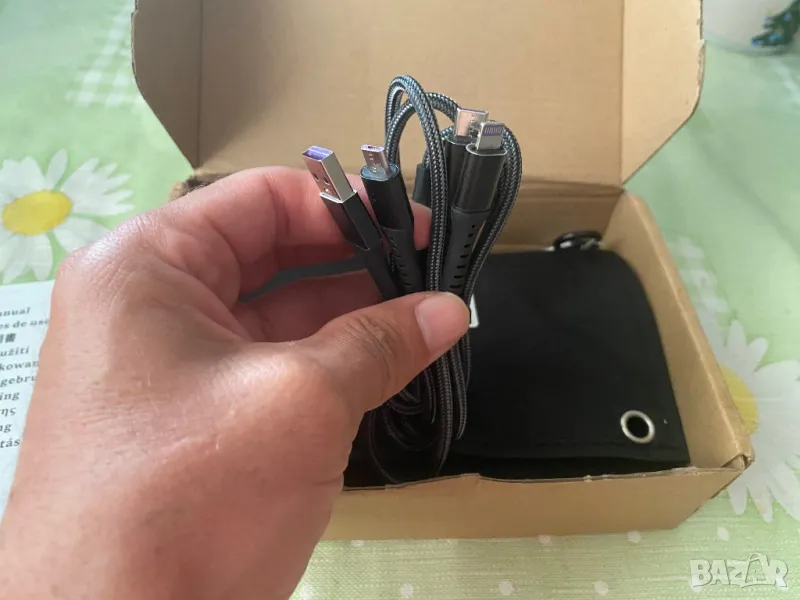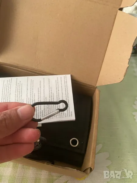 В комплект с кабел и три различни изхода и две катарами за носене на раница или закачане на палатка и др.