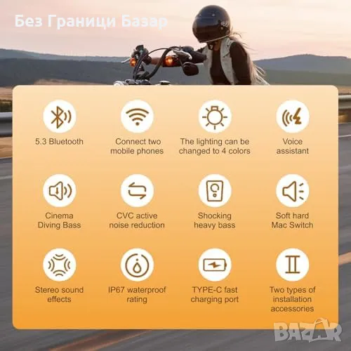 Нова Слушалка за мотористи IP67, Hi-Fi звук, Type-C, двойно свързване