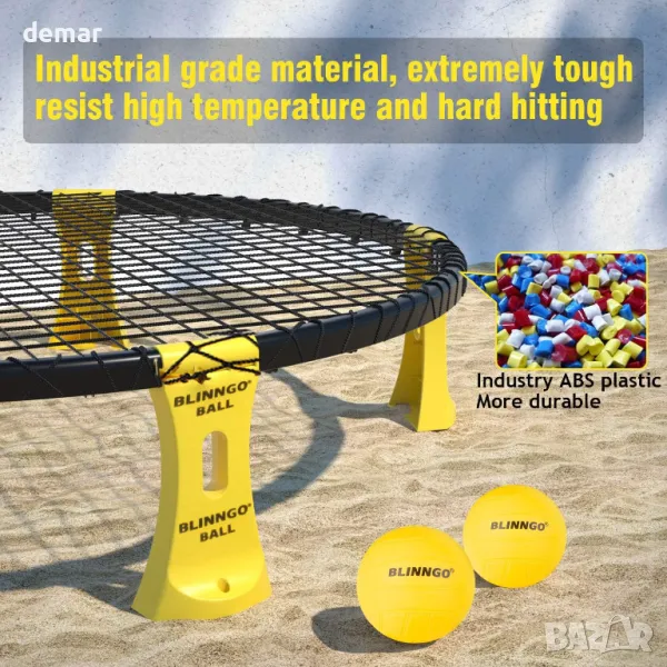 Blinngoball е високоенергийна игра на открито и закрито, подходяща както за възрастни, така и за семейства, предназначена за игра на трева, пясък или дори на закрито. Тя разполага с патентована кръгла мрежа с оптимизирана еластичност за отскок на топката, осигурявайки плавна и завладяваща игра. Изработена от материали с индустриален клас, тя е изключително издръжлива на топлина и силни удари, със здрава рамка, която издържа добре по време на интензивна игра. Конструкцията е професионално проектирана за допълнителна стабилност, дори по време на сблъсъци. Опакована в атрактивна кутия, тя е и добър подарък за активни хора или такива, които се нуждаят от повече движение, и се предлага с всички необходими компоненти за незабавна игра.