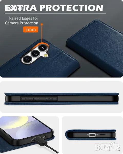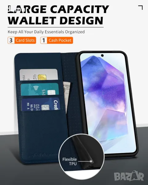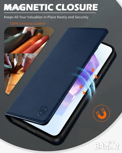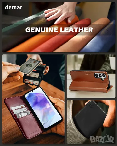 Калъф-портфейл SHIELDON за Galaxy A55 5G 6.6" от естествена кожа с слотове за карти