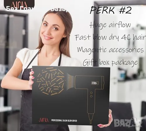 Мощност 2200W (240V) за бързо и мощно сушене на всички типове коса