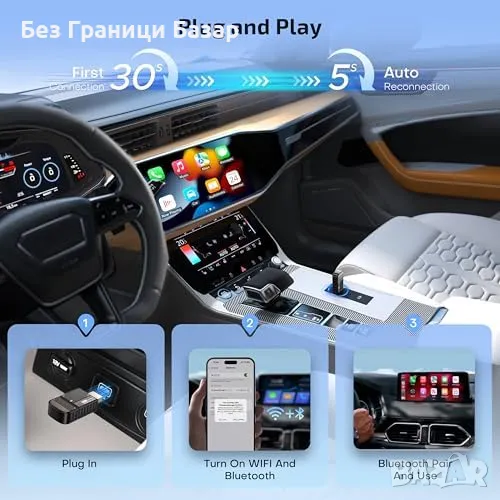 Безжичен адаптер за CarPlay и Android Auto 2-в-1 – обновен за 2025 г.