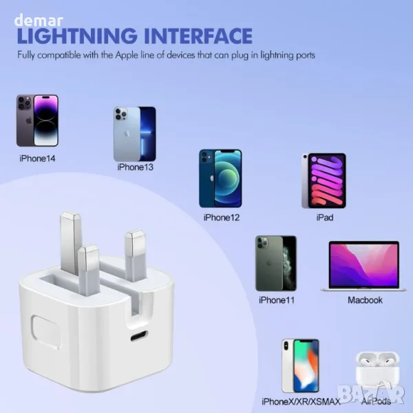 Това сертифицирано от MFi 20W PD зарядно устройство за iPhone включва 1,8 м USB-C към Lightning кабел, предлагащ бързо и безопасно зареждане за редица модели, включително iPhone 14, 13, 12 и 11 серии (Pro, Pro Max, Plus). Проектирано за ефективно захранване, то осигурява надеждна производителност, силна съвместимост и подобрена издръжливост за ежедневна употреба.