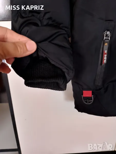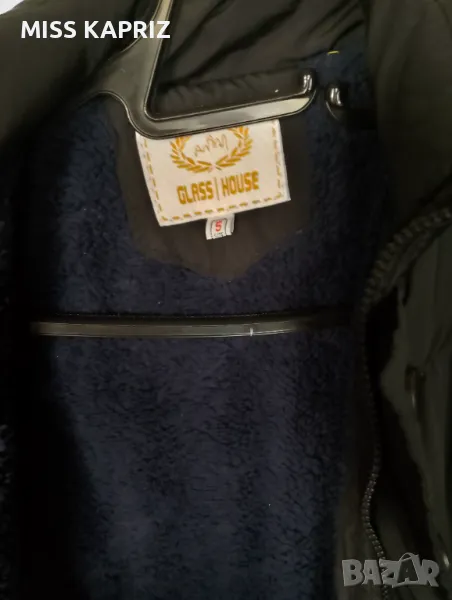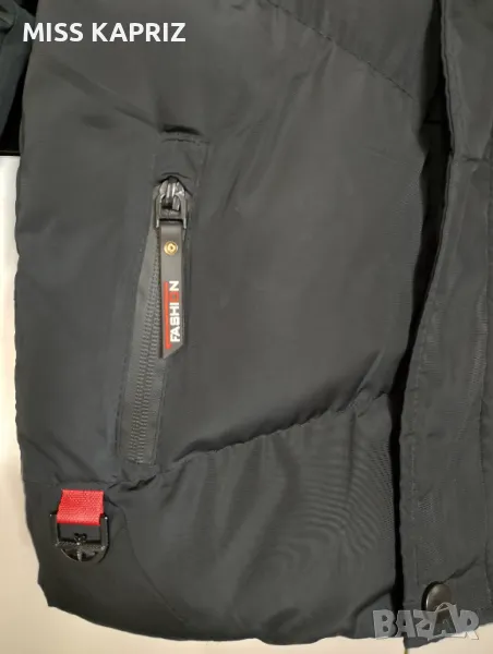 Зимно яке с дебела пухкава подплата, ластични маншети на ръкавите, възможност за прикачване на качулка, без забележки