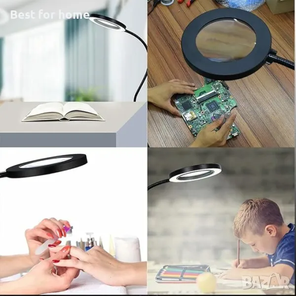72 светлини Многофункционална настолна лупа с двойна скоба