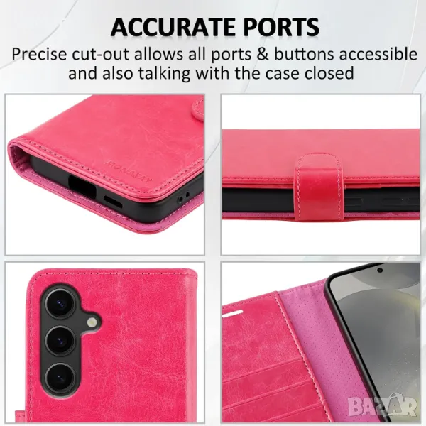 Калъф-портфейл MONASAY за Samsung Galaxy S24 5G 6.2 инча, ярко розов