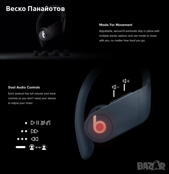 Безжични слушалки Beats Powerbeats Pro - чип Apple H1 за слушалки и слушалки, Bluetooth клас 1, 9 часа слушане, устойчиви на пот слушалки - черни.ОРИГИНАЛ