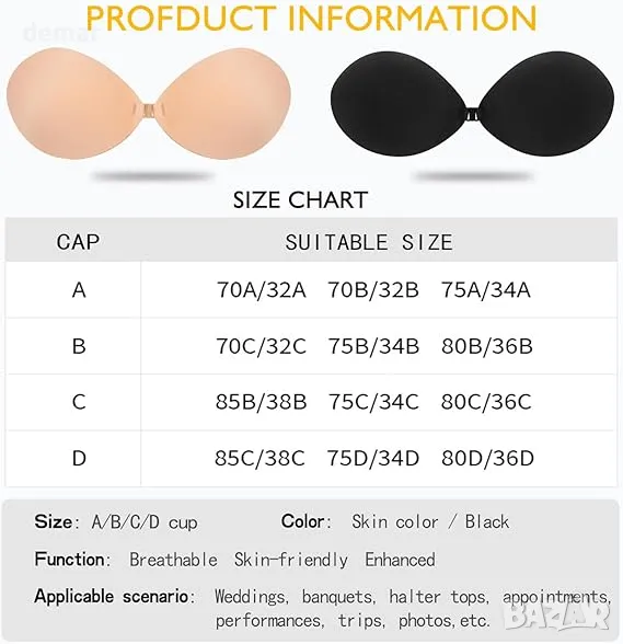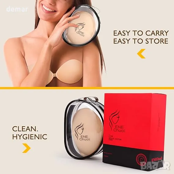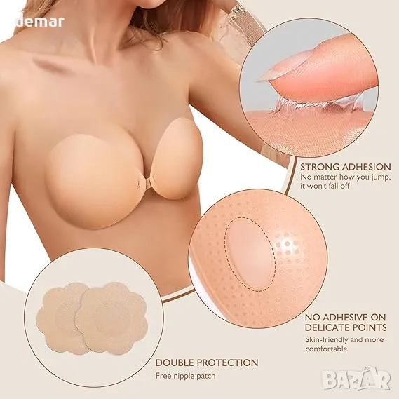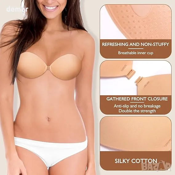 Сутиен без презрамки, самозалепващ се силиконов, безшевен, невидим сутиен с повдигащ ефект