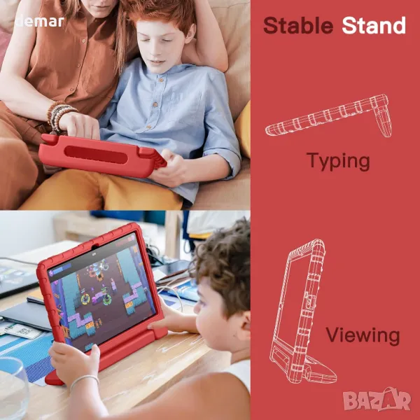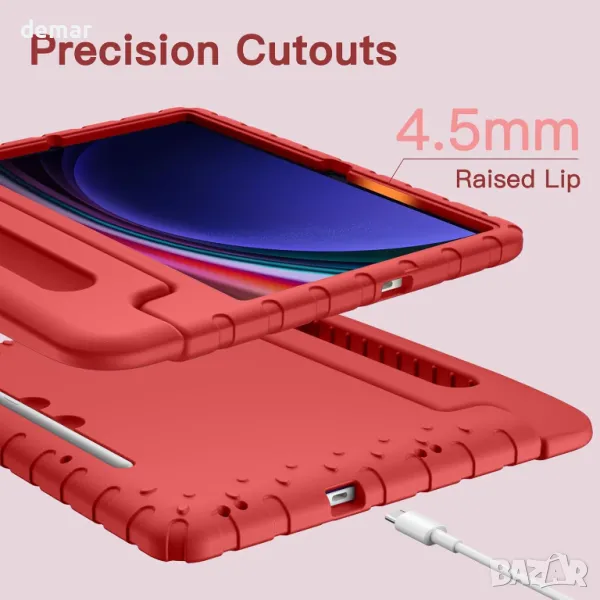 Специално проектиран за Samsung Galaxy Tab S9 11 инча, този лек калъф от EVA пяна предлага висока защита от удари, падания и драскотини, с повдигнати рамки за защита на екрана и камерата. Той разполага с прецизни изрези за безпроблемен достъп до всички портове и контроли и поддържа магнитно сдвояване и зареждане с S Pen. Конвертируема противоплъзгаща дръжка улеснява носенето от деца и служи и като стойка за употреба със свободни ръце, а ярките, забавни цветове са подходящи както за момчета, така и за момичета, осигурявайки лесен монтаж и надеждна защита.