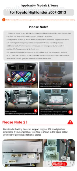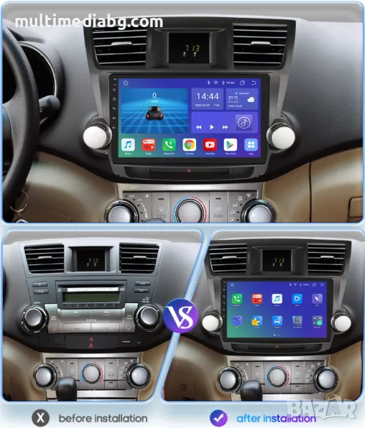 Мултимедия с операционна система Android за Toyota Highlander съвместима с моделите от 2007 до 2013 година