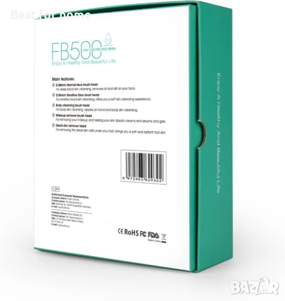 Прикрепете главата на четката, от която се нуждаете. Нанесете равномерно почистващ препарат за лице след намокряне на лицето. Внимателно се движете около лицето си или някъде другаде с кръгови движения с почистващия препарат за няколко минути. Изплакнете кожата и главата на четката и се насладете на своята блестяща, копринено гладка кожа. Спецификации: Име на продукта: VOYOR 5-В-1 ЕЛЕКТРИЧЕСКА ЧЕТКА ЗА ЛИЦЕ Модел: FB500 Материал: ABS Работно напрежение: 5V Работна мощност: 5W Капацитет на батерията: 600mAh Размер на продукта: 18.5/8.5/5.5cm Тегло на продукта: 195 g Време за зареждане: 1 h Съдържание на опаковката: 1 x VOYOR FB500 Електрическа четка за лице 1 x 0,08 mm нормална глава за четка за лице 1 x 0,06 mm глава за чувствителна четка за лице 1 x Глава за почистване на тялото 1 x Глава за премахване на мъртва кожа 1 x Глава за четка за премахване на грим 1 x Капак за прах 1 x USB кабел за зареждане (USB зарядно устройство не е включено) 1 x Ръководство на потребителя Топли съвети: Моля, заредете напълно продукта за 1 час, за да активирате напълно вътрешната батерия преди първа употреба и винаги не забравяйте да зареждате устройството, когато е включено безсилен. И не го използвайте, докато се зарежда. Натиснете бутона за 3 секунди, за да изключите устройството. Почиствайте четката за лице и всички резервни глави всеки път след употреба. Пазете устройството от среда с висока температура и избягвайте пряка слънчева светлина. Сменяйте главите на четката на всеки 2 до 3 месеца за добри резултати при почистване и ексфолиране.