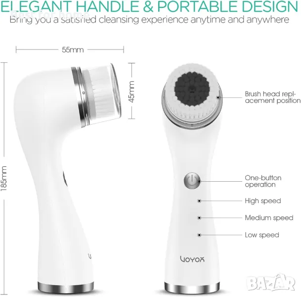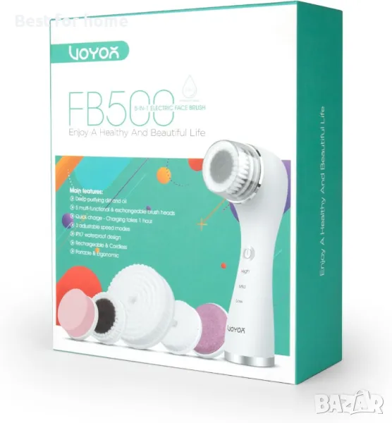 Четка за почистване на лице VOYOR FB500 е подобрена версия на четката FB100, която има очевидни предимства на базата на FB100. Наличието на 3 скорости на почистване е подходящо за всички типове кожа, дори и за чувствителна кожа. Безжичният и акумулаторен дизайн го прави преносим за носене. Но все още запазва характеристиките на FB100, който има 5 многофункционални глави, които помагат за нежното ексфолиране и стимулират кожата ви, за да осигурят по-чиста и мека мекота по цялото ви тяло. Следователно новата надстройка ще ви донесе по-добро изживяване. Подробности за продукта 360° РОТАЦИЯ ЗА ДЪЛБОКО ПОЧИСТВАНЕ Четката с въртене на 360° с меки косми, която ви предлага пълна гама от почиствания за ефективно премахване на мазнини, мръсотия, остатъци от грим. КОМПЛЕКТ ЗА ПОЧИСТВАНЕ НА ЛИЦЕ И ТЯЛО Оборудван с 5 функционални глави за четки, сред които и четка за тяло. Тази въртяща се четка може да отговори на всички нужди за почистване на вашето лице и тяло. НАСТРОЙКА НА 3 СКОРОСТ Четката за почистване на лице има три интензитета от ниска, средна до висока. Ниска скорост за чувствителна или крехка кожа, средна скорост за ежедневна употреба при повечето типове кожа и висока скорост за по-интензивно почистване и ексфолиране. IPX7 W ВОДОУСТОЙЧИВО Безжичната четка за миене на лице е напълно водоустойчива, което я прави безопасна и удобна за използване във вашата баня, дори под душа. ЕЛЕГАНТЕН ДИЗАЙН И ЛЕСНА РАБОТА Елегантният и модерен дизайн го прави идеален подарък за вашите приятели и семейство. Той е изключително гъвкав за преместване благодарение на подобрения си дизайн, който пасва перфектно на ръката ви. АКУМУЛАТОРНА И ПРЕНОСИМА Със своята 600mAh вградена акумулаторна батерия, 1 час пълно зареждане за 30 дни употреба. Този компактен и лек дизайн го прави избор за пътуване или бизнес пътуване. Как да използвате: Прикрепете главата на четката, от която се нуждаете. Равномерно нанесете почистващ препарат за лице след намокряне на лицето. Прикрепете главата на четката, от която се нуждаете. Внимателно движете лицето си или някъде другаде с кръгови движения с почистващия препарат за няколко минути. Изплакнете кожата и главата на четката и се насладете на своята блестяща, копринено гладка кожа. Спецификации: Име на продукта: VOYOR 5-IN-1 ЕЛЕКТРИЧЕСКА ЧЕТКА ЗА ЛИЦЕ Модел: FB500 Материал: ABS Работно напрежение: 5V Работна мощност: 5W Капацитет на батерията: 600mAh Размер на продукта: 18.5/8.5/5.5cm Тегло на продукта: 195 g Време за зареждане: 1 h Съдържание на опаковката: 1 VOYOR FB500 Електрическа четка за лице 1 x 0,08 mm нормална глава за четка за лице 1 x 0,06 mm глава за чувствителна четка за лице 1 x Глава за почистване на тялото 1 Глава за премахване на мъртва кожа 1 x Глава за четка за премахване на грим 1 xКапак за прах 1 USB кабел за зареждане (USB зарядно устройство не е включено) 1 xРъководство на потребителя Топли съвети: Моля, заредете напълно продукта за 1 час, за да активирате напълно вътрешната батерия преди първа употреба и винаги не забравяйте да зареждате устройството, когато е включено безсилен. И не го използвайте, докато се зарежда. Натиснете бутона за 3 секунди, за да изключите устройството. Почиствайте четката за лице и всички резервни глави всеки път след употреба. Пазете устройството от среда с висока температура и избягвайте пряка слънчева светлина.Сменяйте главите на четката на всеки 2 до 3 месе