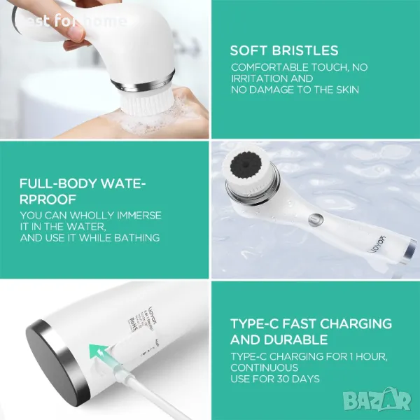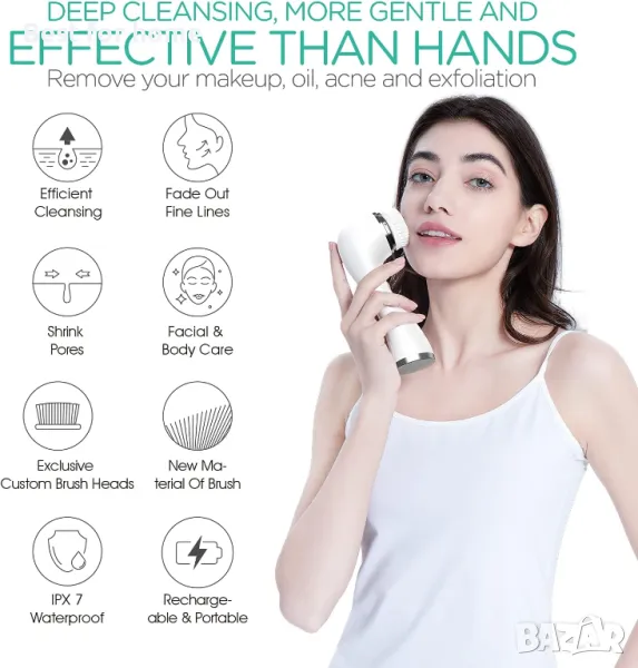 Водоустойчивост IPX7 - Безжичната четка за миене на лице е напълно водоустойчива, което я прави безопасна и удобна за използване във вашата баня, дори под душа.