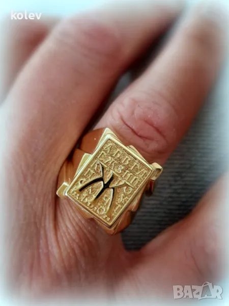 Представяме нашия нов модел, изработен в духа на старите традиции. Ръчно изработен златен пръстен с релефна буква, написана на кирилица. Във фона се загатват и другите букви от азбуката. Този пръстен не крещи с многообразие от символи и камъни, той говори тихо, но уверено за съхраняване на традициите в рода и семейството. Изработен ръчно от злато, с релефна плочка, на която може да бъде изписана избрана от теб буква, която има значение. Може да е първата буква на твоето име, на любим човек или нещо, което искаш да носиш в себе си. Това не е просто бижу, а знак на личен избор. Без излишна показност, това е мъжки аксесоар, който носи характер. Нещо малко, което казва много. Не за другите, а за теб самия. Личният стил започва с малките, но значими детайли.