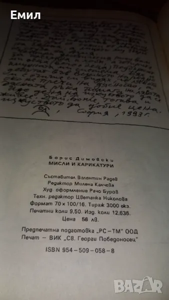 Борис Димовски -"Мисли и карикатури" → Обява 50036217