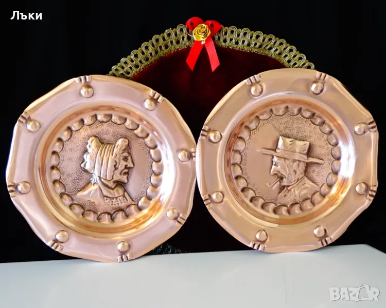 Две старинни медни чинии за стена,медни пана,ръчно ковани
