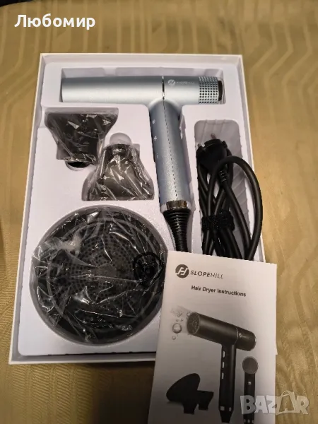 Сешоар Slopehill с уникален безчетков двигател |IQ Perfetto |Иновативен микрофилтър |Oxy Active Technology |LED дисплей 2000W (син).висока скорост, за да постигне автоматично почистване. за да гарантираме вашата дългосрочна употреба!. Лека функция за памет и стилен външен вид: модерен и елегантен бутон, 3 скорости на вятъра, 3 температури, с LED дисплей бутон за студен въздух. Независимият бутон за превключване има функция за памет. Ако го отворите отново, той следва предишната настройка. Отговаря на всички изисквания за моделиране, много подходящ за семейства и фризьорски салони. Постоянна температура с йонна технология: вграден микропроцесор, температурен сензор и предавател на отрицателни йони. Интелигентното високочестотно наблюдение от 50 пъти в секунда може ефективно да избегне увреждане на косата от прегряване. Сешоарът може да освободи до 50 милиона отрицателни йони под силния въздушен поток, който не само затегнете статичното натоварване на косата, но също така и косата, така че косата да стане здрава и блестяща. Балансирана дръжка, падащ режим на вход Дизайн: Ние изграждаме интелигентна система за управление под контрол, за да поддържаме ергономичния дизайн, така че динамичният баланс да се поддържа по време на мехурчетата на косата. Теглото на ръката на този сешоар е само 268 g. Регулируемият режим помага да се предотврати изскубването на косата. С подвижен филтър можете да го почистите по всяко време, за да осигурите постоянен вятър. Моделиране на безчетков двигател на самолетни турбинни двигатели: Сешоарът е оборудван със самостоятелно разработен уникален безчетков високоскоростен двигател със 110 000 RPM. Работното колело приема формата на авиационен турбинен двигател, което насърчава силен въздушен поток и значително подобрява изхода на въздуха до 58 m надморска височ