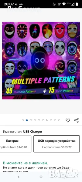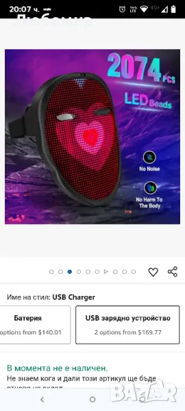 налични 2 бр.Най-готината Led маска: Led светещи маски за възрастни деца с дизайн на маска за цялото лице, каишката е регулируема, лека и лесна за носене, подходяща за маскарад, парти, косплей, рожден ден, Хелоуин, Коледа, рейв, фестивал на електронна музика и други поводи. Толкова е страхотно, че никой няма да го хареса. Подходящ за Парти за рожден ден, приятели, съученици или други поводи. Цифровите електронни светодиодни маски за мъже, жени са изненадващи перфектни готини подаръци досега, показват вашата личност и определено ще се откроят от тълпата.Led маска с отлично качество: Функцията Led Digital Electronic Face Mask е абсолютно невероятна, Led Luminous Mask използва силна светлина 2074 PCS (2121RGB мъниста на лампата), Яркостта и яснотата на светодиодите създават отлични графики/анимации, цветовете са много ярки и живи и определено привличат вниманието на всички. Готината Led цифрова светеща маска за възрастни Детето е удобно за носене, много тихо при работа, трябва да инсталирате 3 сухи батерии AA, батерията е издръжлива. Светодиодна маска със смяна на жестове, различен дисплей.Led маска с Bluetooth програмируема: Led светеща маска има 45 динамични режима на показване и 70 статични изображения на дисплея, можете да настроите различни единични цветове, светкавици, плавни градиенти и многоцветни според повода, Led маските могат да бъдат лесни за свързване към Bluetooth, просто изтеглете приложението Shining Mask и използвайте ПРИЛОЖЕНИЕТО за проектиране на уникална персонализация „направи си сам“, можете да качите текст/изображения Чрез ПРИЛОЖЕНИЕТО Led Cool Digital Glow Face Rave Mask, което ви прави по-привлекателни за всички, това е най-невероятната Led маска.Led Shining Mask: Трябва да инсталирате 3 AA сухи батерии (ПАКЕТЪТ НЕ Е ВКЛЮЧЕН AA DRY БАТЕРИИ). Можете лесно да си го направите сам, като използвате своя телефон/таблет. 1, Натиснете бутона Led Luminous Smart Digital Mask Start Led Mask; 2, Включете Bluetooth на мобилно устройство; 3, Отворете началната страница на приложението Shining Mask, щракнете върху „Свързване Устройство". Щракнете върху иконата "Bluetooth" в страницата на ПРИЛОЖЕНИЕТО, намерете мобилен Bluetooth ID; след като връзката е успешна, ви позволява да персонализирате уникална Led Rave маска с изображение/анимации/графити/текст/дисплей със звукова вълна, така че искате.Информация за продукта Име на продукта: Led маска с Bluetooth програмируемо приложение, За парти с костюми на фестивала на електронната музика, Светещи изцяло LED маски за възрастни Размер на продукта: Около 22*18*5 см Време за използване: Около 12-16 часа Батерия: 3 AA батерии (не са включени) Поддържани езици: 10 вида пиксели: 46*58 (неправилни) мъниста на лампата: 2121RGB мъниста за лампа Брой мъниста за лампа: 2074 Материал: Abs пластмаса+Pvc леща+силикон Модел на продукта: 45 динамични снимки, 70 неподвижни снимки Тегло на опаковката: 802 g Нетно тегло на продукта: около 303 g Размер на опаковката: 25,7 cm * 21,5 cm * 9,3 cm Включени 1*Led маска 1* Английски Ръководство за технически характеристики Led Full Mask може да се използва с приложението за мобилен телефон (SHINING MASK). Приемане на висока мощност, висока светлина, дълъг живот 2074 мъниста за лампа и 2121 RGB мъниста за светодиодна лампа. Не произвежда ултравиолетови лъчи и няма неблагоприятни ефекти върху човешкото тяло. Удобен за вашето лице. Равномерно меката светлина не причинява напрежение и умора. ПРИЛОЖЕНИЕТО SHINING използва 1, трябва да инсталирате 3 AA сухи батерии (ПАКЕ