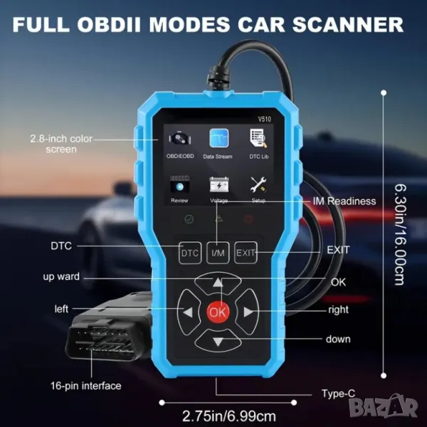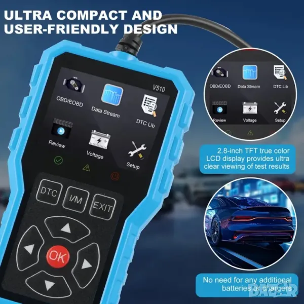 Full OBD2 EOBD автомобилен диагностичен кодочетец V510
