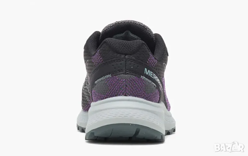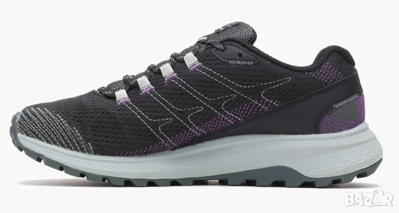 Супер добри обувки за ходене от Merrell. Обувката е изработена от черен и лилав текстил. Има черни връзки през стъпалото, за да може да се регулира, за да пасне на крака. Отвътре е подплатено с черен текстил и има текстилна стелка. Междинната подметка е светло сива EVA подметка, което я прави мека и гъвкава. Външната подметка е сива гумена подметка, така че да стоите стабилно.
