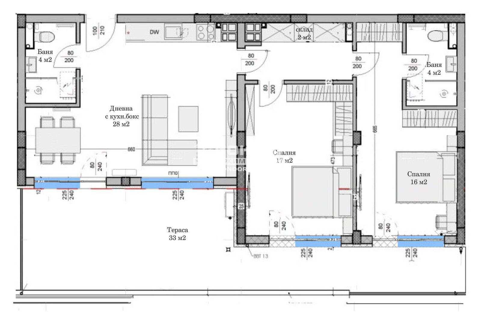 Предлагаме Ви просторен тристаен апартамент с изцяло южно изложение и перфектно разпределение в нова модерна сграда със собствен стил, изчистена визия, проектирана така, че да създаде максимален комфорт и уют за живеене. Проектът предвижда нискоетажно жилищно строителство, в съответна близост до основни комуникации в един от най-бързо развиващите се райони. Жилището се състои от дневна с кухненска част 28кв.м., две спални: родителска 16кв.м. със собствена баня, детска 17кв.м., втора баня с тоалетна, склад/перално и една панорамна тераса. Сградата се изпълнява от една от водещите строителни компании, наложила се на пазара с множество готови обекти, изпълнени с изключително високо качество и прецизност. Възможност за разсрочено плащане в рамките на строителството , както и възможност за закупуване чрез Банков Кредит с изключително изгодни условия за клиенти на агенция Кондор !!! СВОБОДНИ ПОДЗЕМНИ ГАРАЖИ и ПАРКОМЕСТА !!!