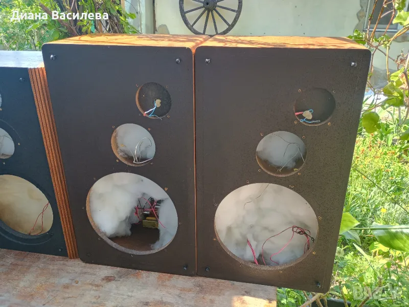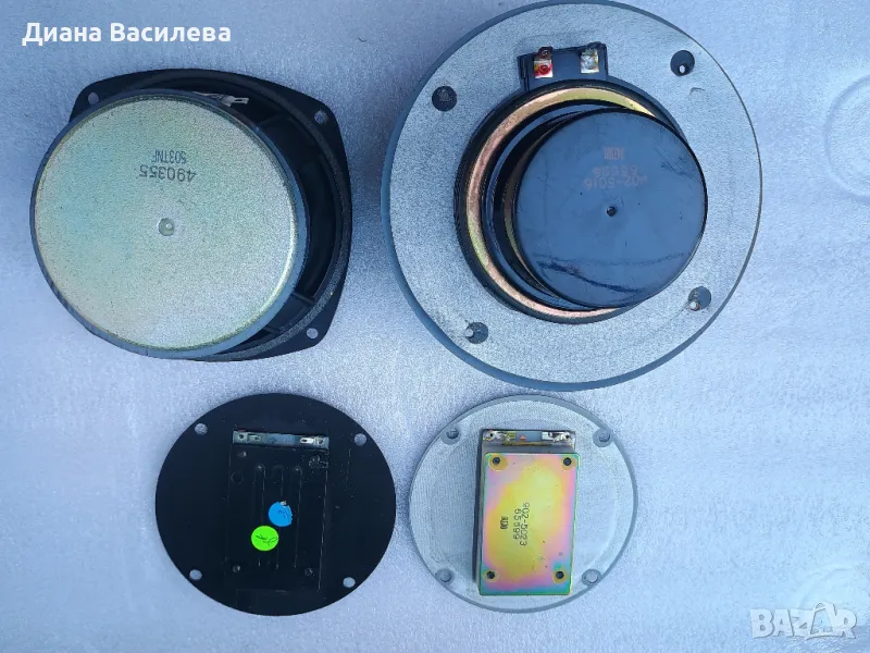 Всички говорители работят и са в много добро състояние. Кабинетите на двата комплекта също са в много добро състояние.