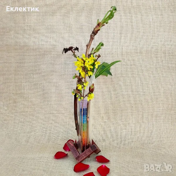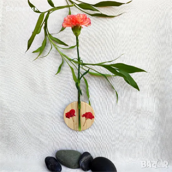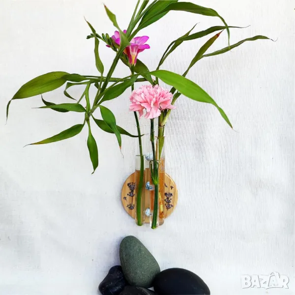 Вази с епруветки. Дърво, полускъпоценни камъни, мъниста, хербарий. Богат избор → Обява 50040794
