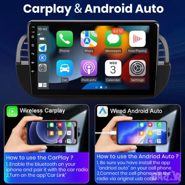 4GB+64GB цена 429.90лв, 8-ядрен процесор, Android Auto, CarPlay, Wi-Fi, RDS, AHD камера