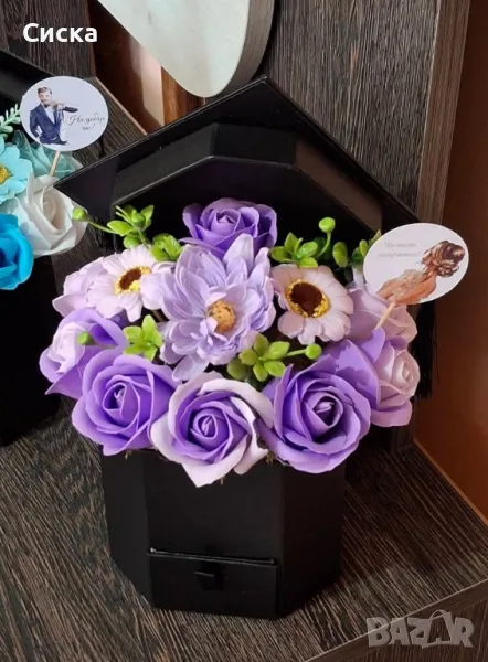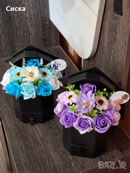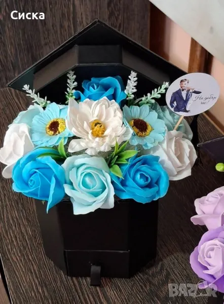 И днес съм ви подготвила нови тематични модели и разцветки на кутии шапки с чекмедже за абитуриенти/абсолвенти🧑‍🎓👩‍🎓 със сапунени цветя от пластичен сапун💜 💙Височина 30 см. 💜Могат да се изработят и с цвят по избор. 👉Цени под всяка снимка👈
