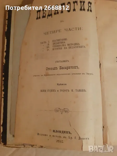 стара книга педагогика 1889 година 370 страници запазена цена 90 лв