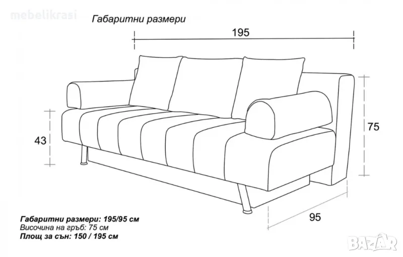 РАЗМЕРИ (Д/Ш/В): 195/95/75 СМ