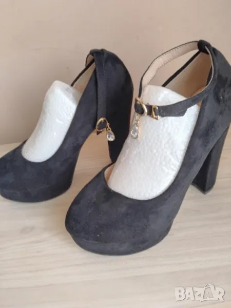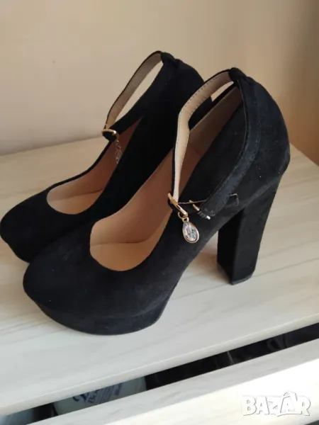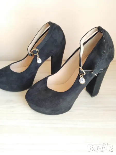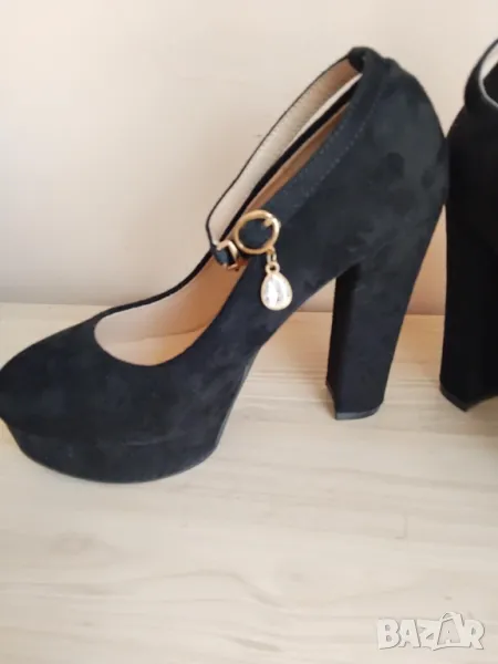 Черни велурени обувки на ток и платформа → Обява 50042333