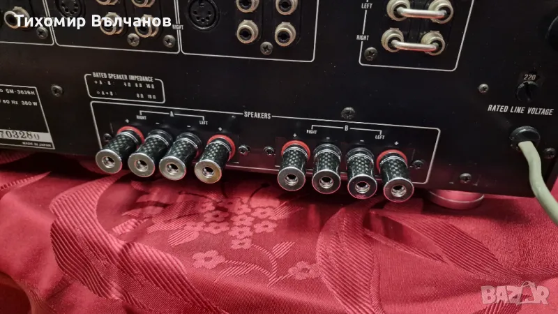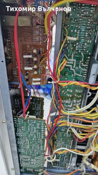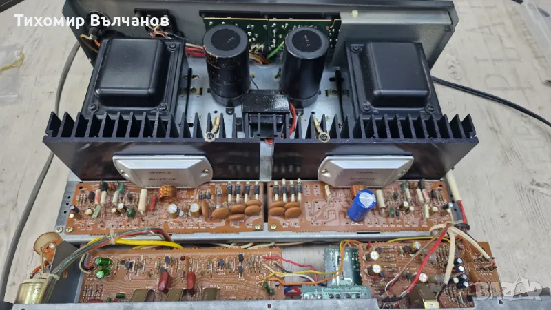 Напълно обслужен-Всички превключватели и потенциометри са разглабяни и почиствани. Няма пукане , пръщене. Всички електролитни кондензатори са подменени с Nichicon FW. По пътя на сигнала са поставени неполярни. Сменена термо паста с MX-4 на изходните хибриди .Подменени са изходните терминали към тонколоните с "банани" с родиево покритие(Оригиналните терминали са налични). Сменени са крачетата с висококачествени алуминиеви такива със 1 см. по-високи за по-добро охлаждане на усилвателя.Усилвателя е 10/10 технически-все едно излиза от завода. Няколко драскотини по горния капак -визуално е 9,8/10.