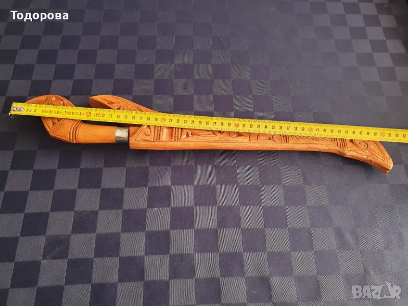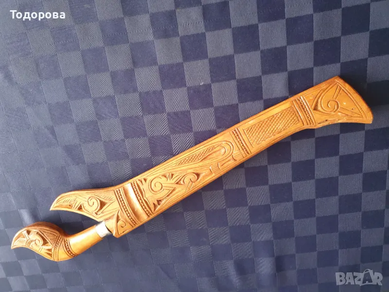 Ритуална кама,нож,кинжал.Отлично състояние.Богата дърворезба по канията и дръжката.Обща дължина - 52 см. Дължина на острието- 30см.