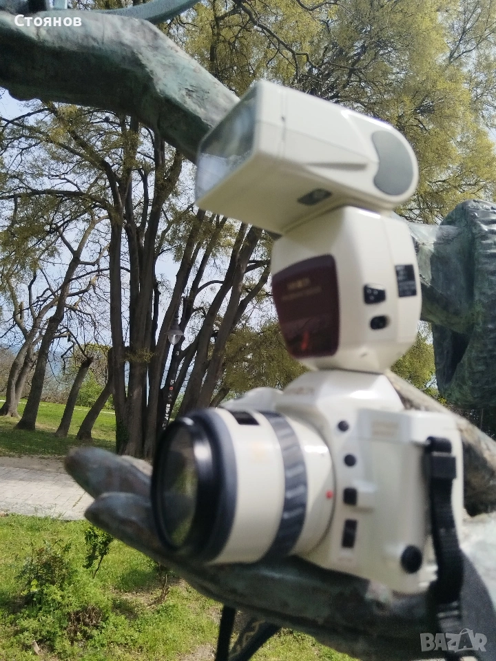 Обектив MINOLTA автофокус 3.5-4.5/35-105mm и светкавица Minolta 5200i, всички в една и съща окраска.