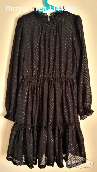 Бляскава черна рокля с дълъг ръкав, подходяща за специален повод. По етикет 140см.