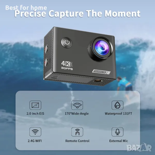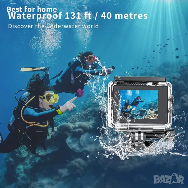 Action Cam 4K подводна камера 131 фута, EIS 20MP Водоустойчива